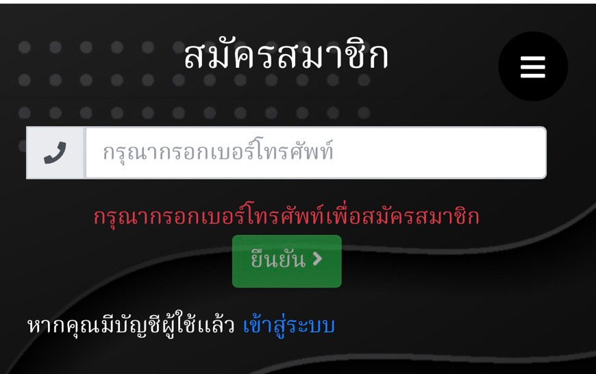 กรอกเบอร์โทรศัพท์มือถือของท่านแล้วกด "ยืนยัน"