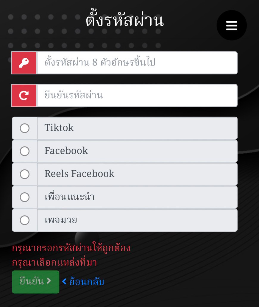ตั้งรหัสผ่านมากกว่า 6 หลักให้เหมือนกันทั้ง 2 ช่องแล้วกด "ยืนยัน"
