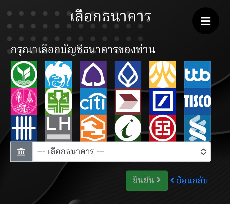 เลือกธนาคารของท่านโดยกดที่รูปแล้วกด "ยืนยัน"