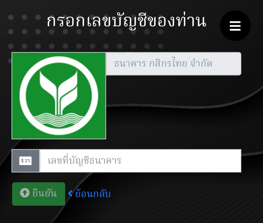 กรอกเลขบัญชี 10 หลักของท่านให้ถูกต้องแล้วกด "ยืนยัน"